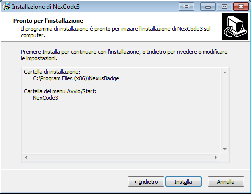 Se le impostazioni sono corrette, cliccare su "Installa" per procedere con l'installazione guidata.