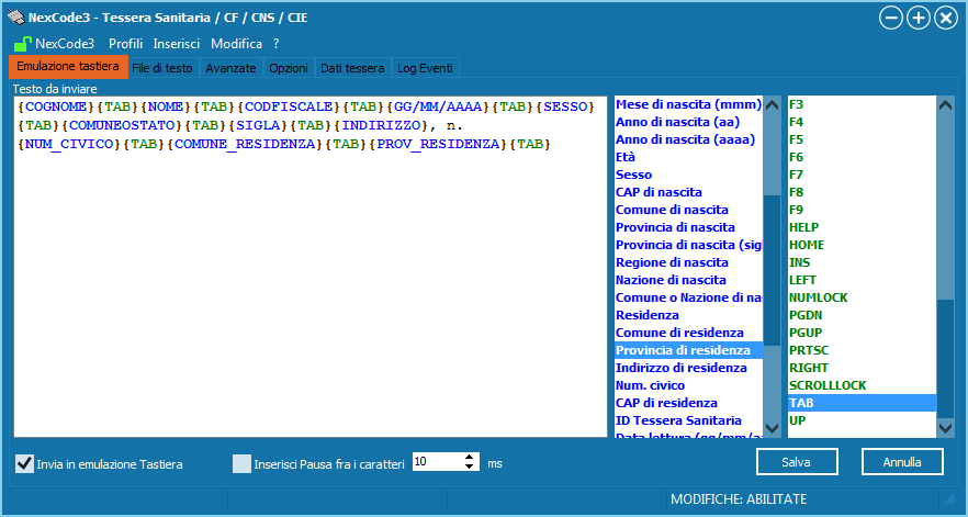 Effettuiamo le impostazioni utili per compilare il nostro form (dopo ciascun campo inseriamo il comando {TAB} per passare alla casella di edit successiva).