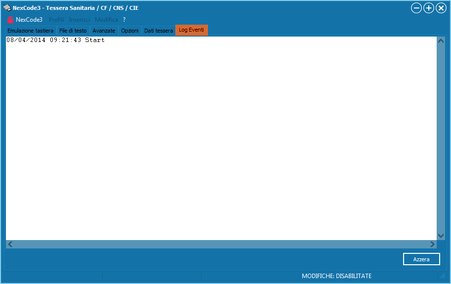 UtilizzoImpostazioni Log Eventi La schermata "Log Eventi" presenta alcune informazioni sulle operazioni e gli errori rilevati da NexCode3 durante l'esecuzione. Può essere utile per avere maggiori informazioni su eventuali malfunzionamenti rilevati.