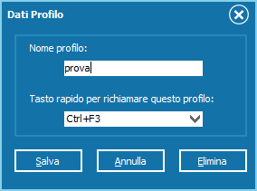 Apportare le modifiche desiderate, dopodiché cliccare col tasto sinistro del mouse sul pulsante "Salva" per salvare il profilo, oppure su "Annulla" per annullare l'operazione; se invece si desidera eliminare il profilo, cliccare col tasto sinistro del mouse sul pulsante "Elimina".